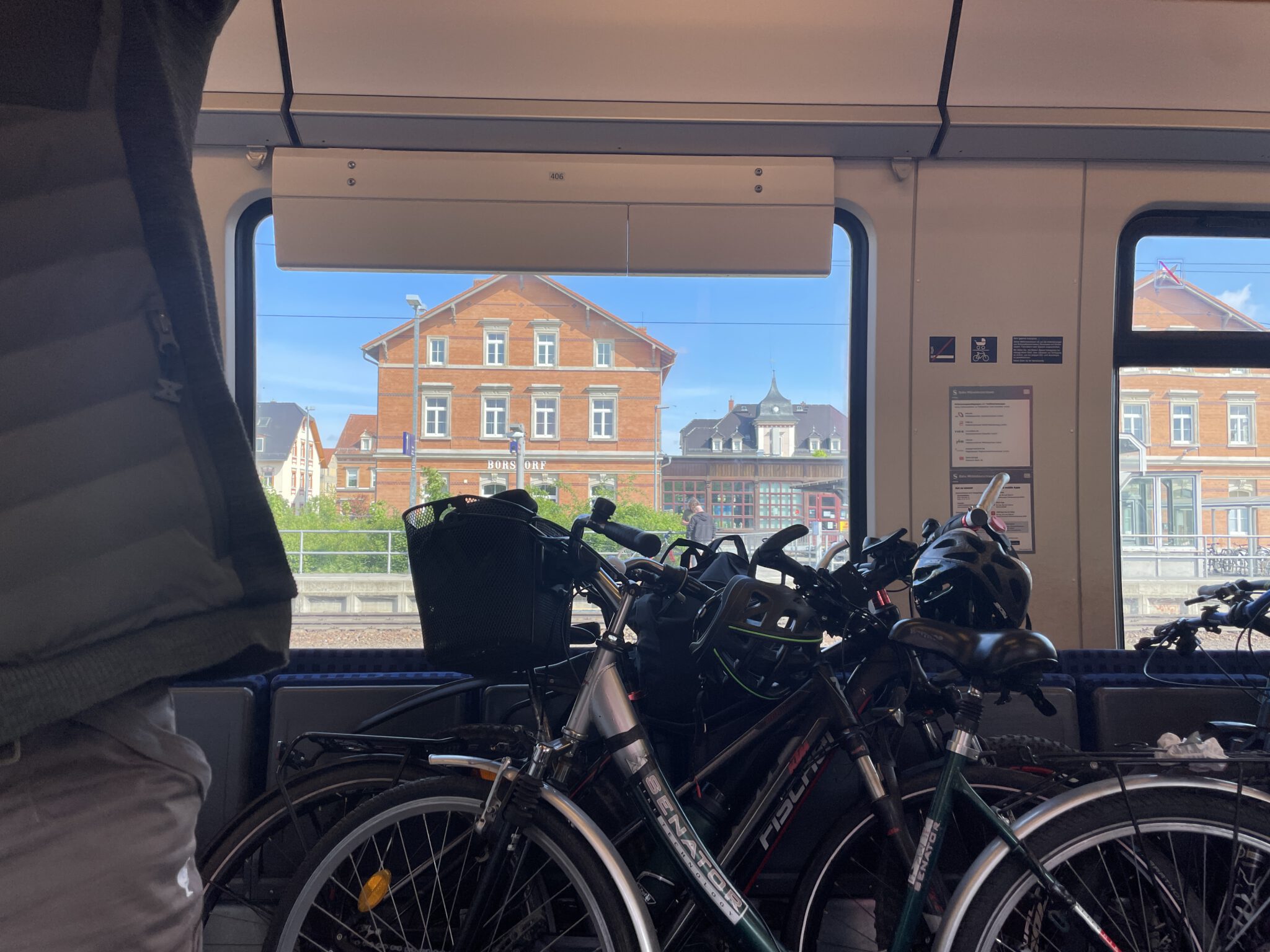 Die Eutritzscher 2023er Himmelfahrt begann nach Jahren Bahnhof mit Bahnabstinenz mal wieder von einem echten „Bahnhof“. Die S3 von Halle kommend hatte bereits Uhri mitgebracht. Der Zugführer sortierte 2x Steffen, Michael, Olaf und Laura sowie 5 Fahrräder in dem gut besuchten Triebwagen.