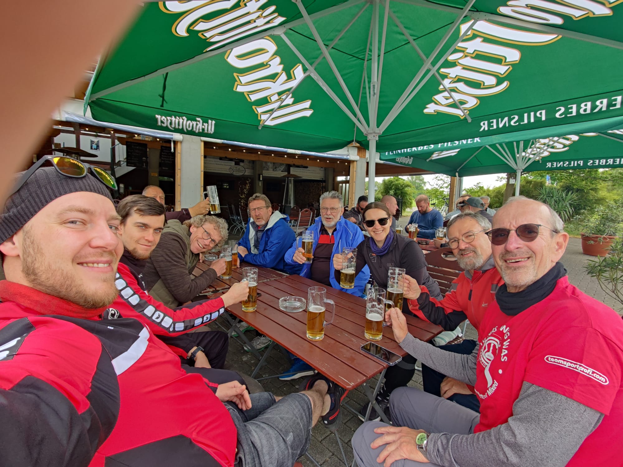 Insgesamt waren die 48 km eine altersgerechte Streckenlänge, eine gesunde Mischung zwischen Trainingseinheit und männertäglichen Vergnügen. Erwartungsgemäß hatten wir wieder einen gelungener Tag. Großen Dank an Laura und Manfred, die mit ihren Zutaten zum Erfolg dieser Fahrt beitrugen und natürlich auch an Horst, der sich bestimmt auch künftig in die Tourplanung einbinden lässt. Übrigens o.F. bedeutet beim SVE nicht „ohne Fahrrad“.